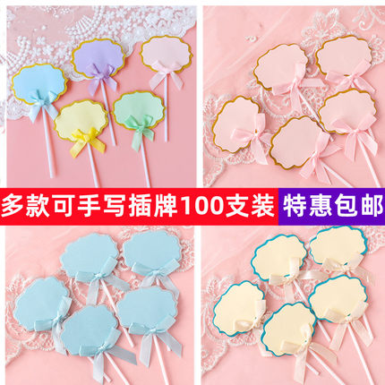 蛋糕装饰可手写字插牌可写字兔子插件贺卡蝴蝶结生日快乐彩虹插旗