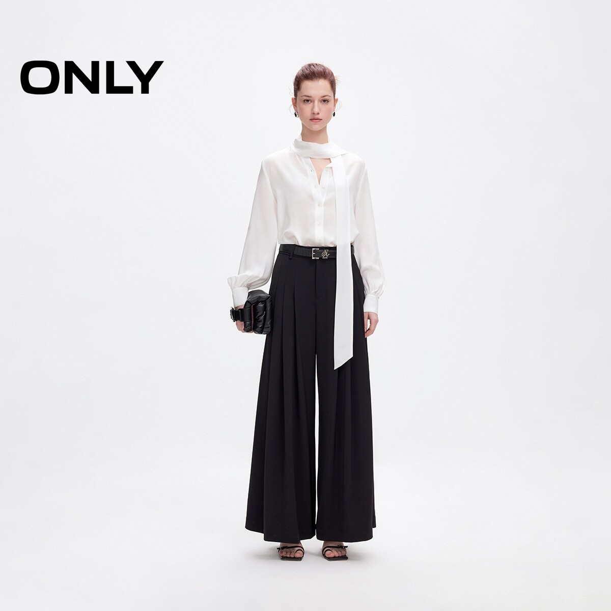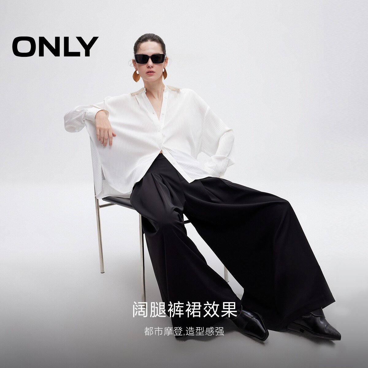 ONLY2025秋冬新款简约百搭舒适亲肤高腰宽松西装裤阔腿休闲裤女