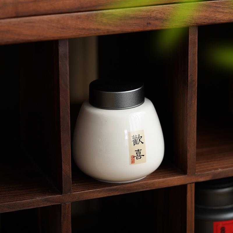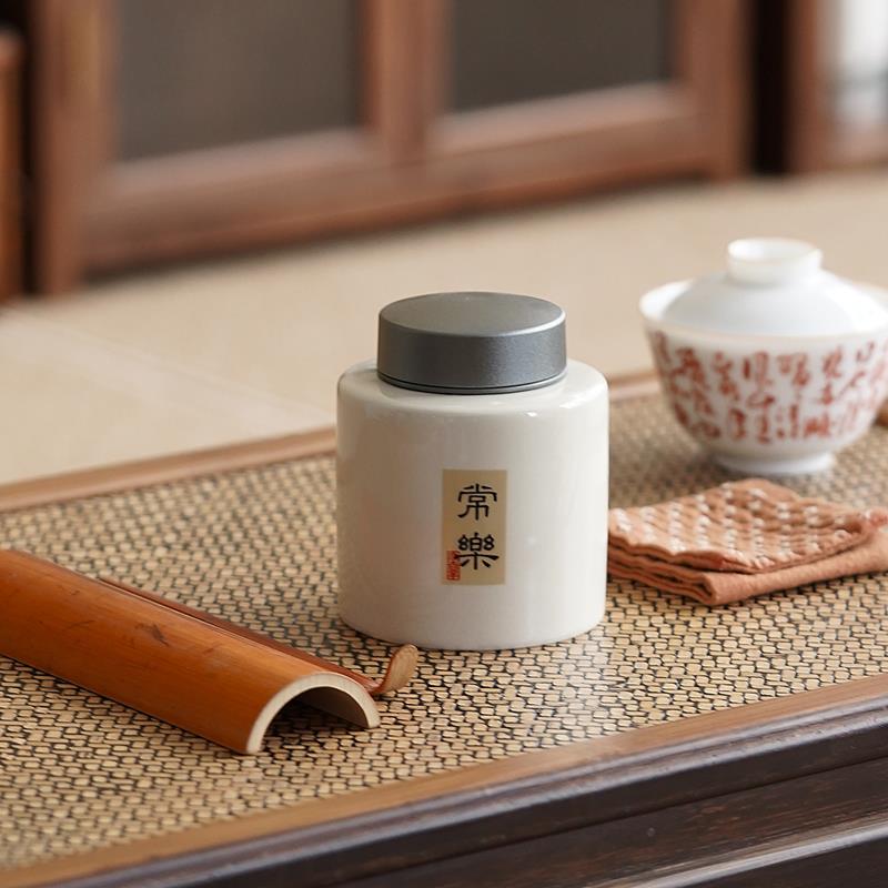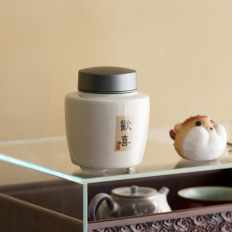 草木灰茶叶罐陶瓷红茶包装盒小号普洱茶双层密封罐家用普洱茶罐子
