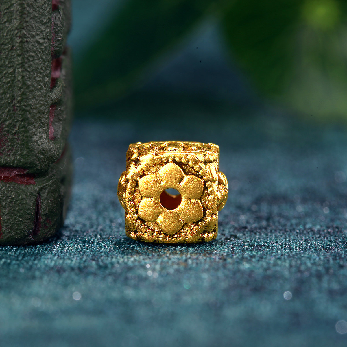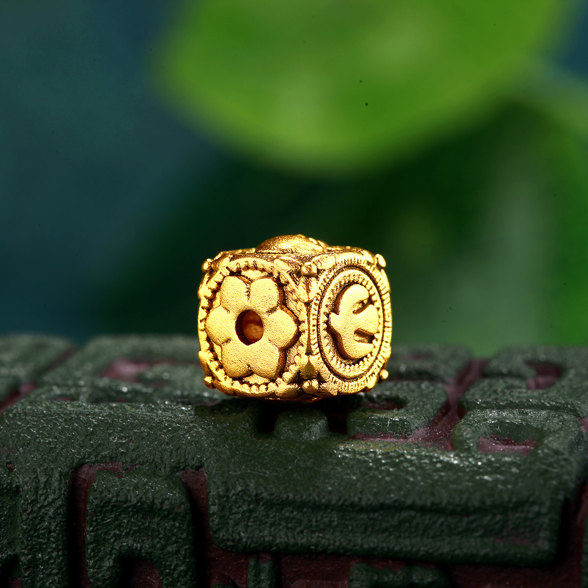 吉盟珠宝古法黄金刺骨方珠999足金转运珠DIY手串项链文玩隔珠配件