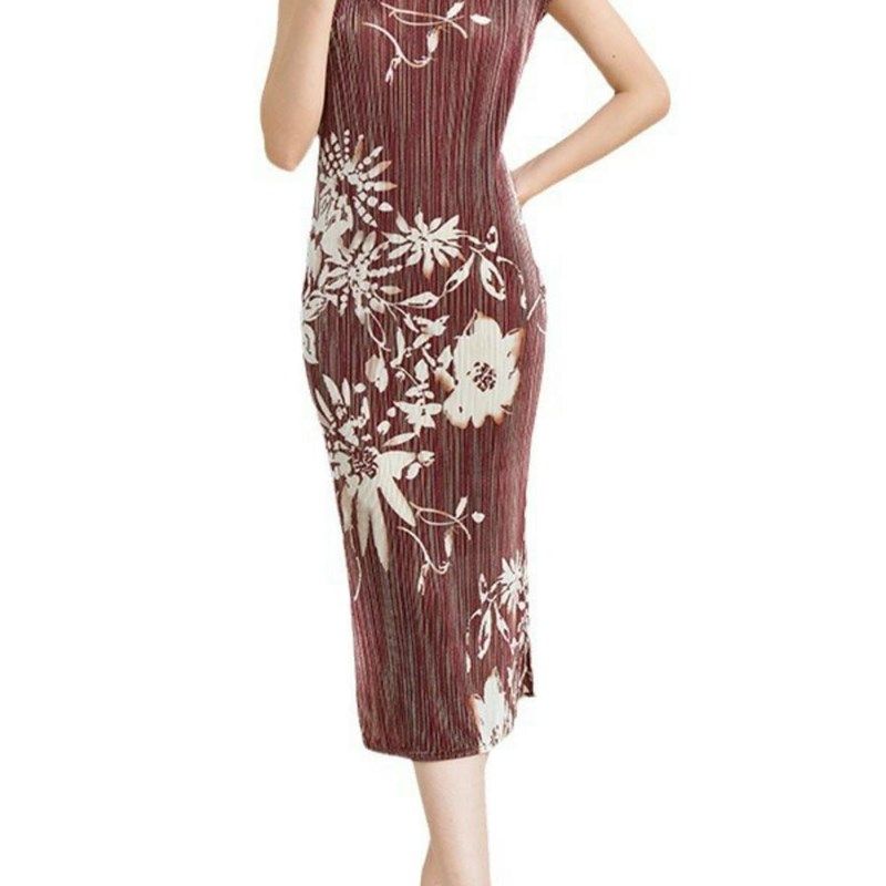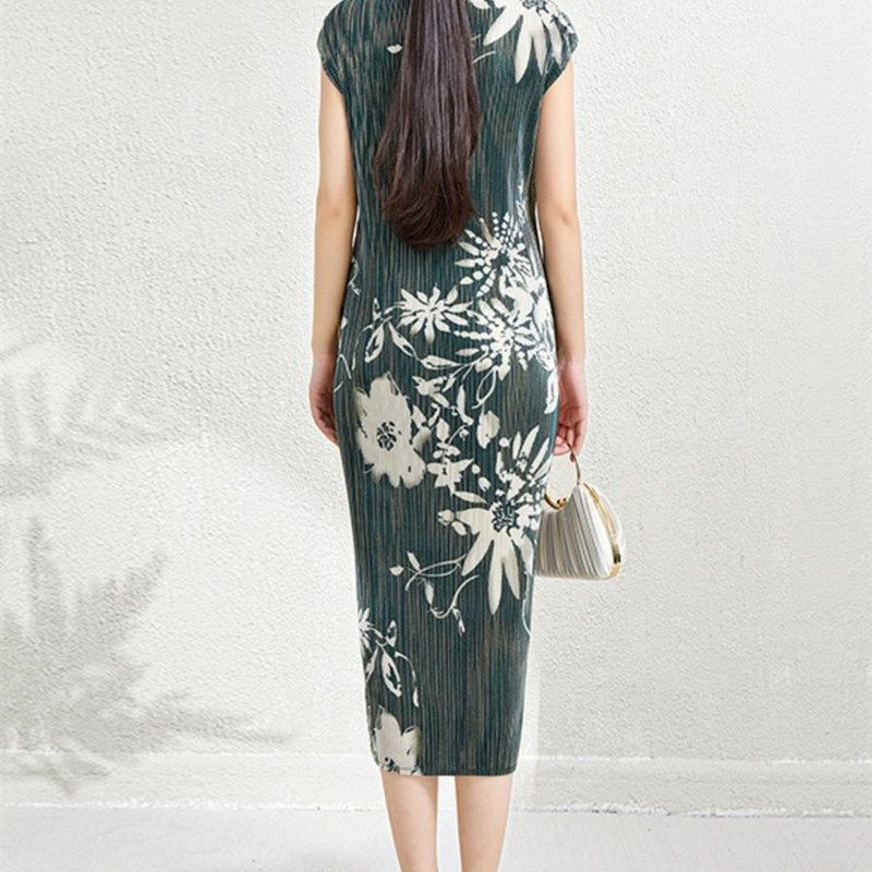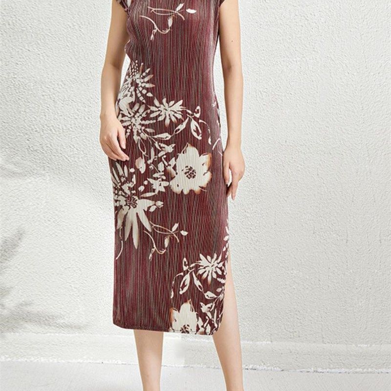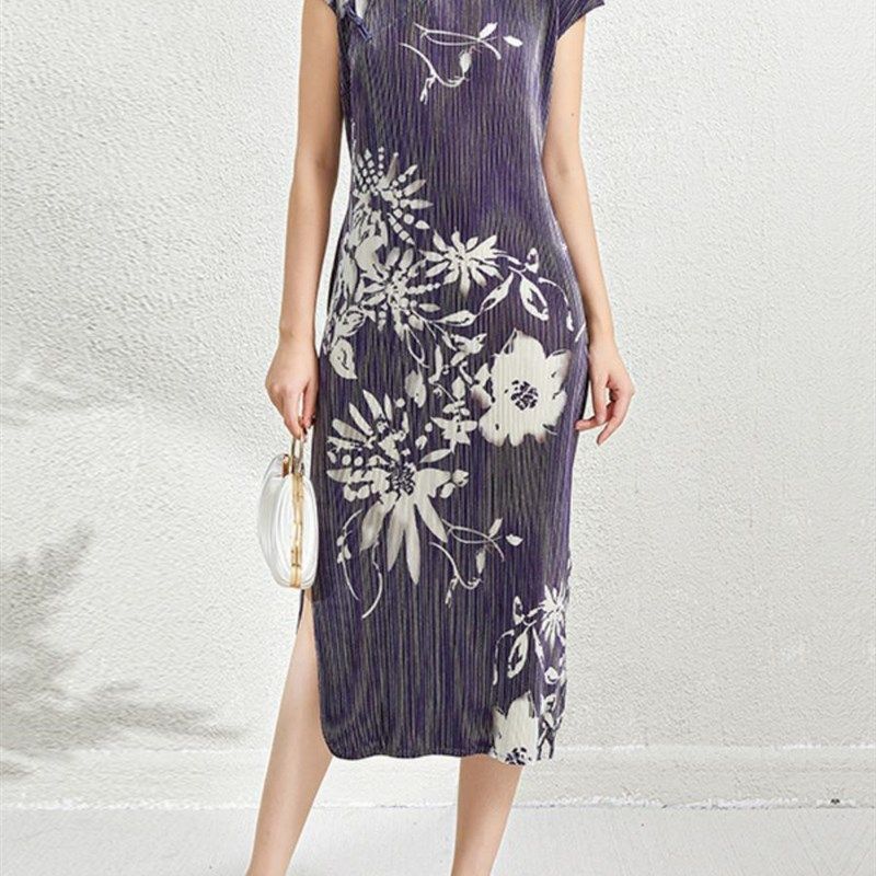 改良版扣领旗袍女式新复古墨迹立领中开新中式连衣裙