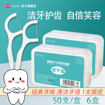 岂于齿牙线家庭装大包装牙签线盒高拉力牙线棒超细6盒300支包邮