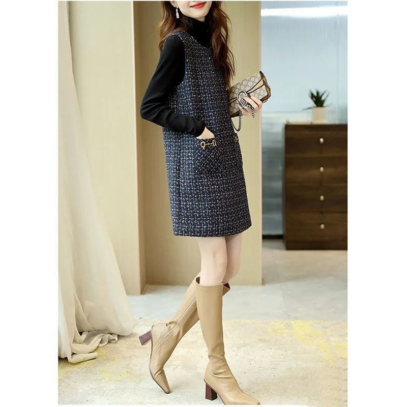 小香风修身圆领粗花呢遮肉背心裙轻奢法式春秋背心裙气质连衣裙女
