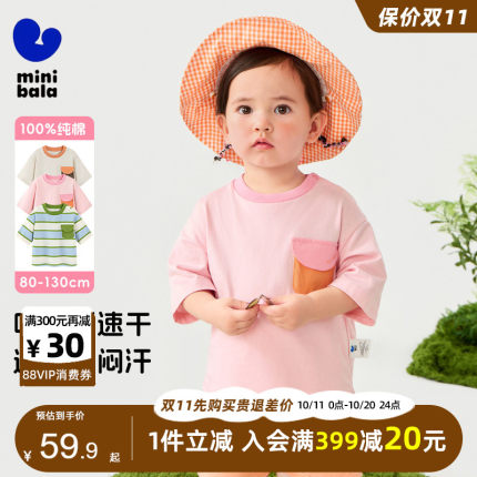 迷你巴拉巴拉女童纯棉速干短袖T恤夏装新儿童宝宝打底衫7分袖上衣