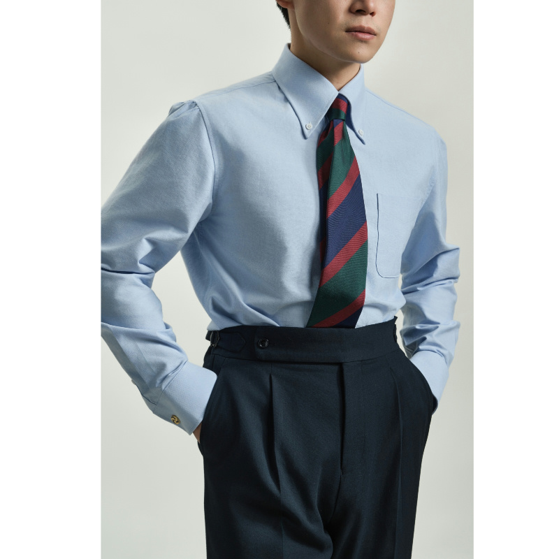 【纯棉】平圆方中牛津纺衬衫男士纯棉长袖浅蓝领尖扣衬衣休闲外搭