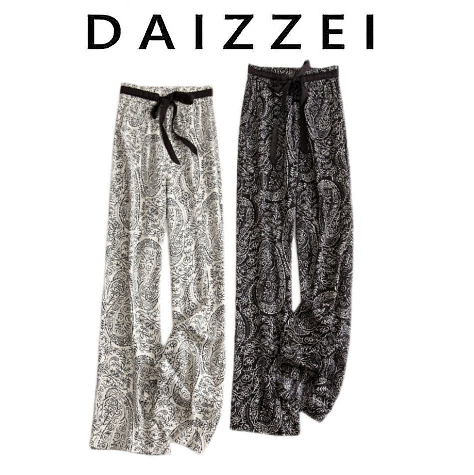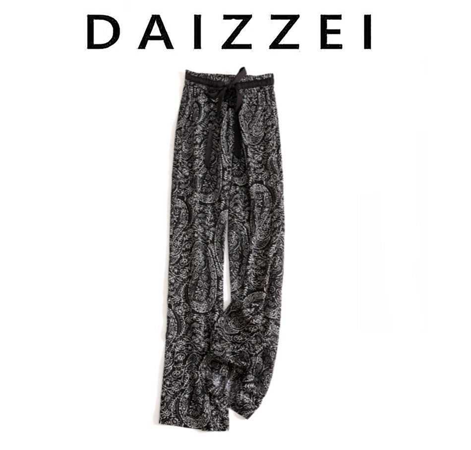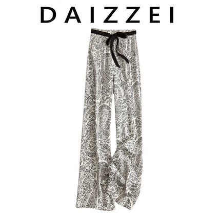 DAIZZEI~水墨阔腿裤女2025夏新款高腰垂感雪纺显瘦宽松休闲长裤潮