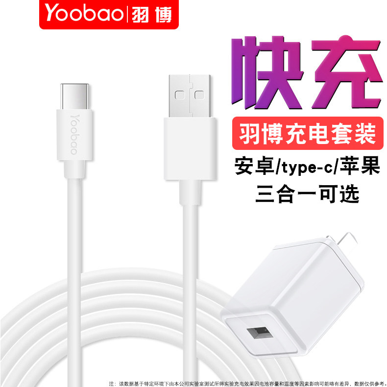 羽博数据线快充通用充电头usb插头5v2a充电器套装2.1a适用于pad vivo华为充电宝type-c线通用