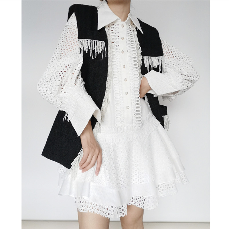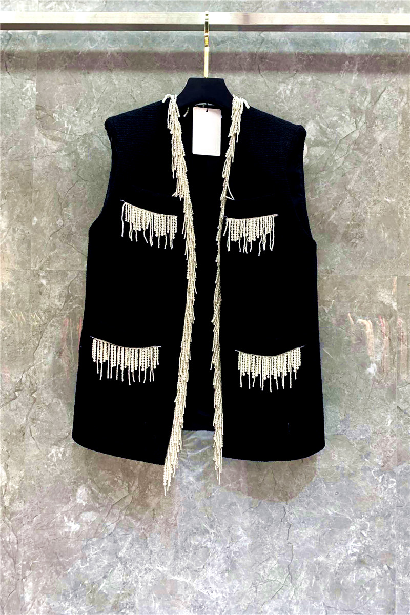 大码胖MM小香风外套女复古珍珠流苏西装显瘦马甲女宽松百搭背心潮
