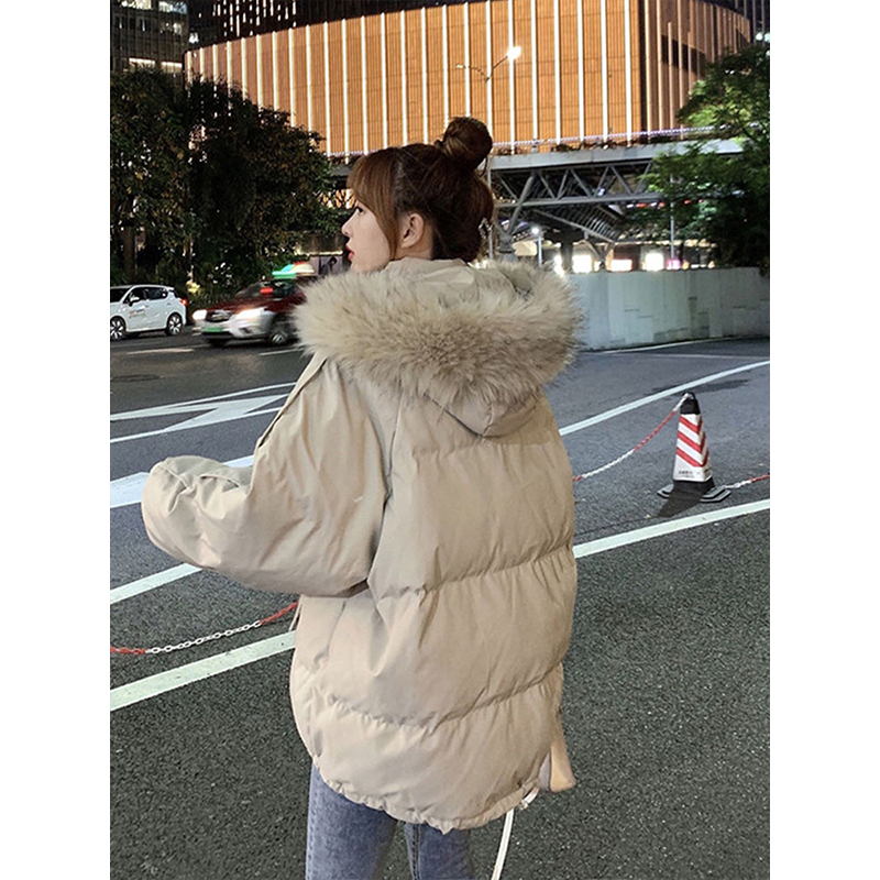 特大码女装韩系杏色羽绒棉服春秋胖mm毛领连帽棉袄加厚保暖外套女