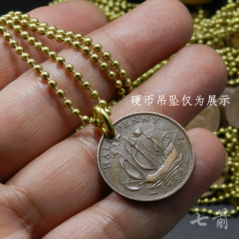 真黄铜珠链项链男女通用铜珠链 圆珠链硬币吊坠挂链 2.4mm