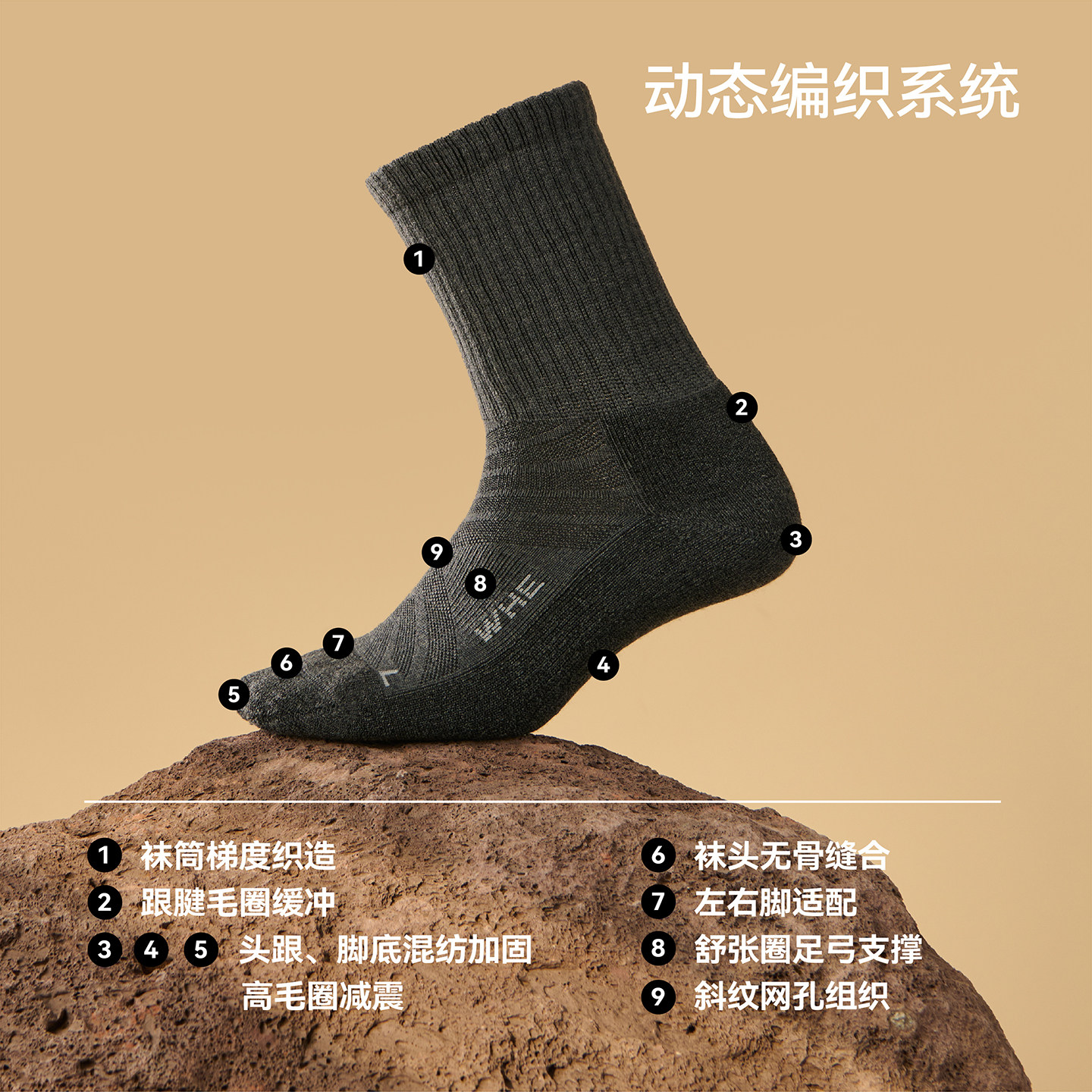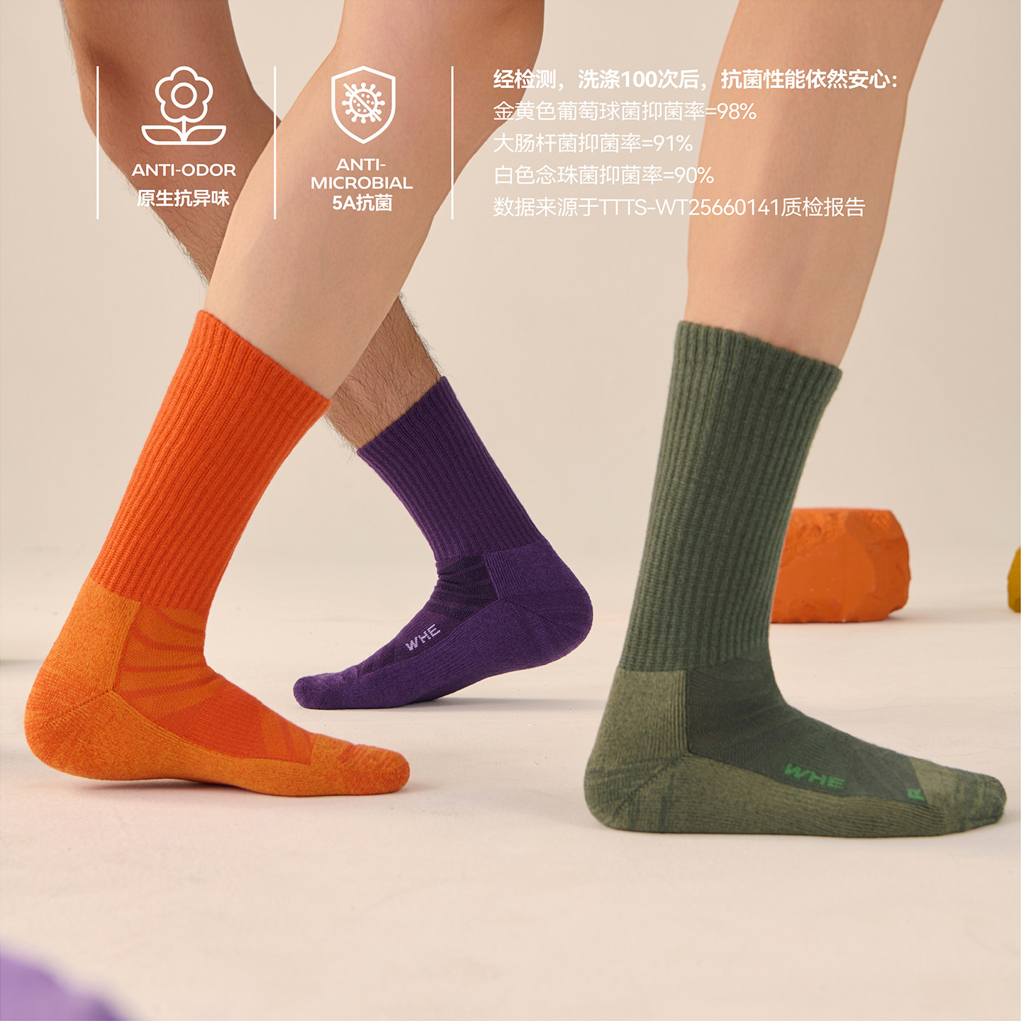 WHE美利奴户外羊毛袜徒步袜登山袜跑步袜轻量缓震防异味中筒袜