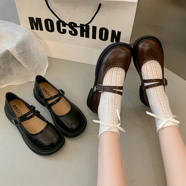 复古圆头浅口单鞋女2025春秋新款英伦风小皮鞋女韩版平底玛丽珍鞋