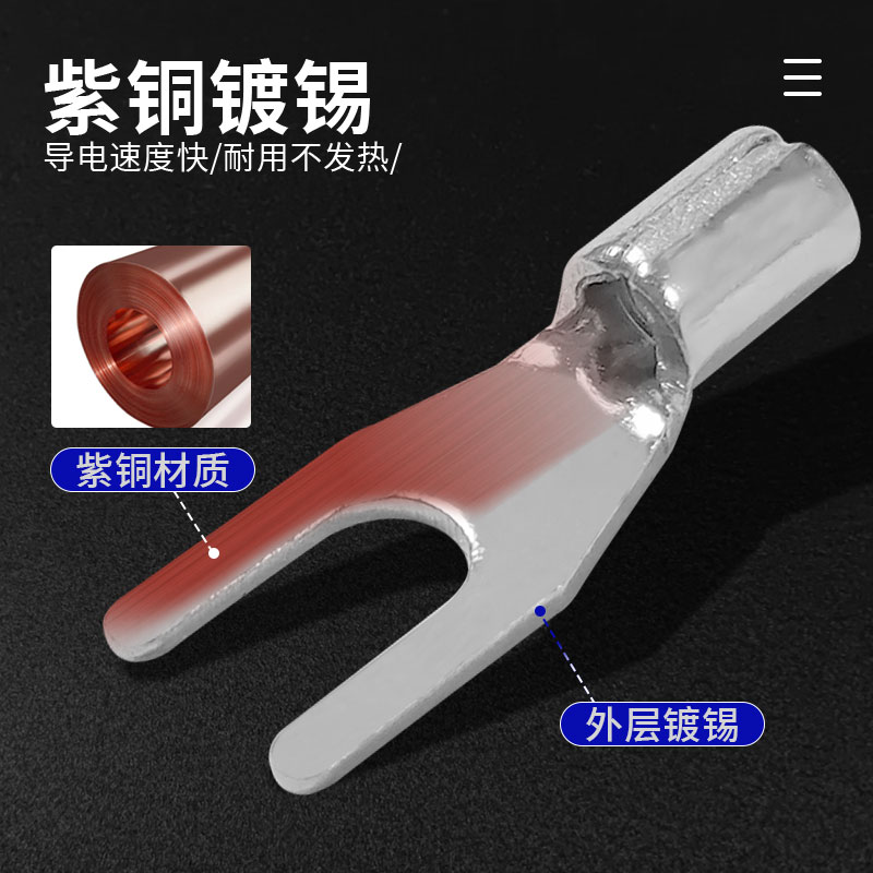 接线端子SNB1.25-3.2紫铜加厚压线钳UT1-3开叉口点焊国标裸线耳