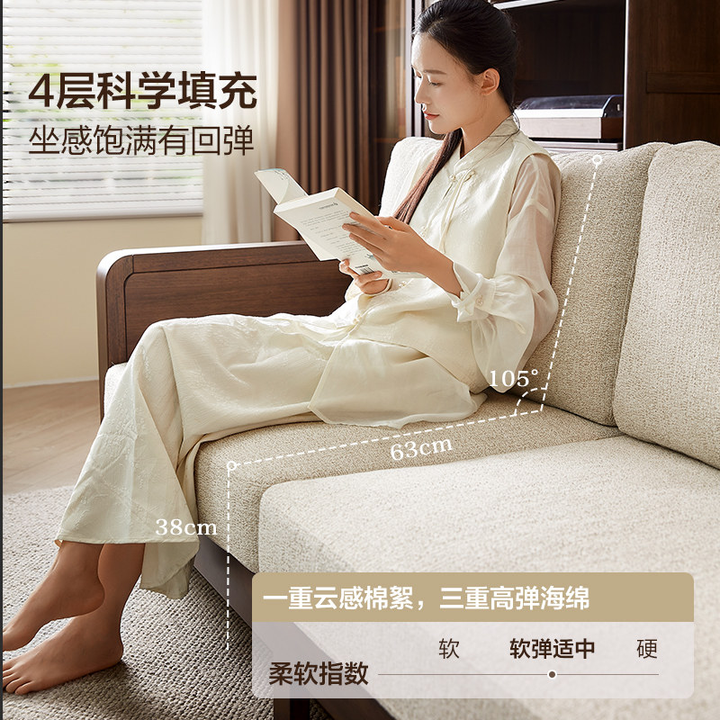 全友DW8083风华系列新中式小户型客厅实木框架沙发