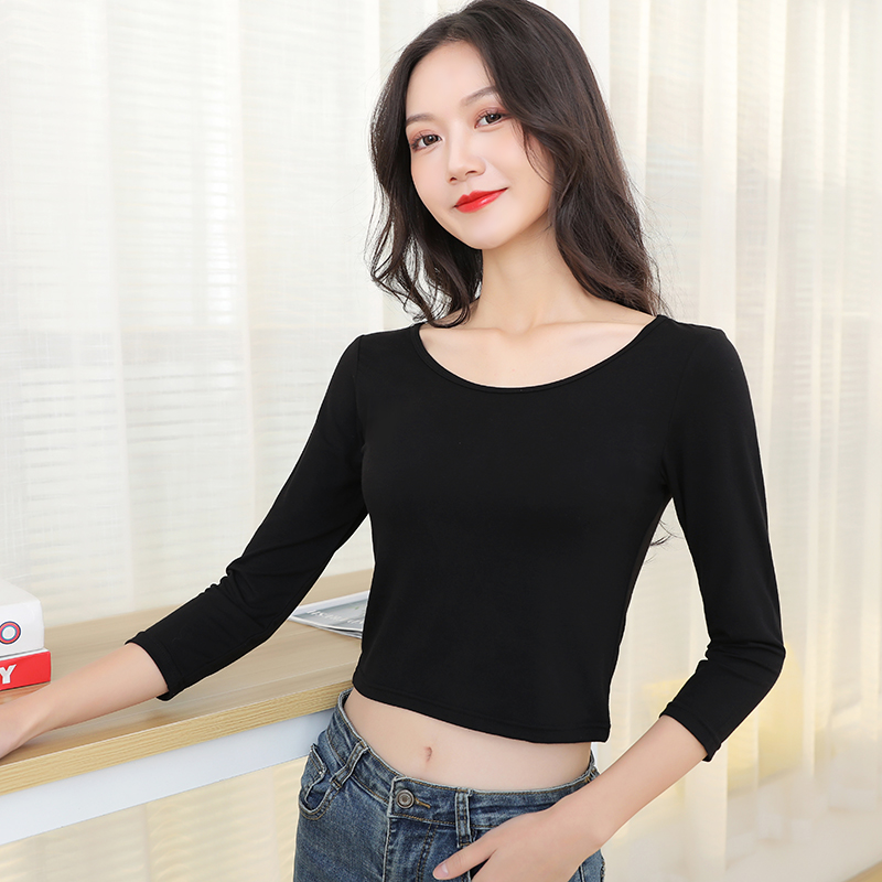 莫代尔露脐打底衫女七分袖秋冬薄款圆领内搭修身高腰短款t恤7分袖