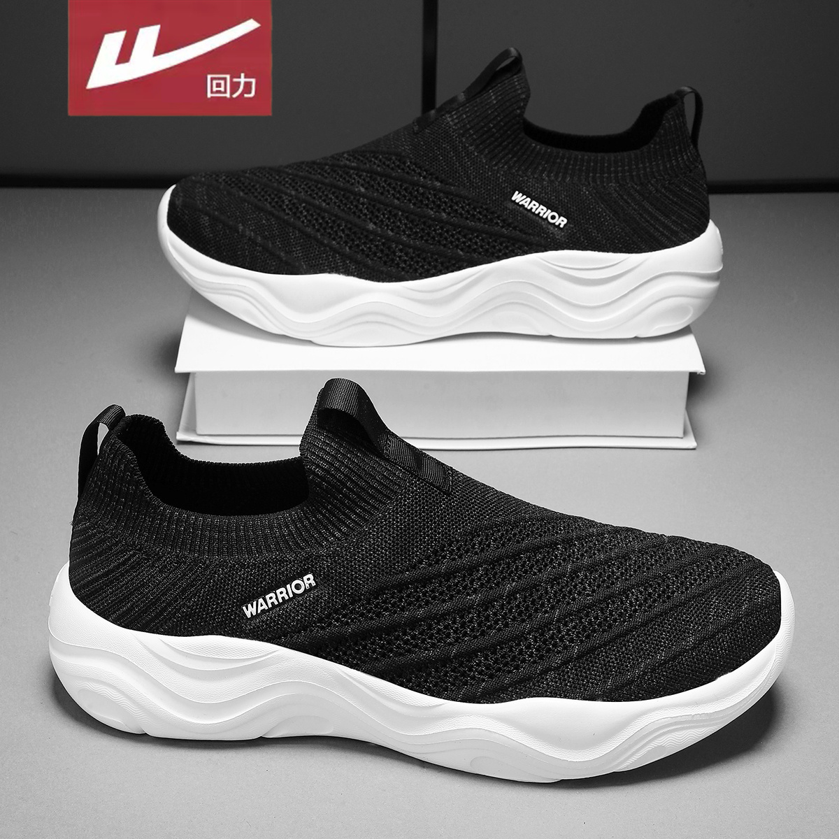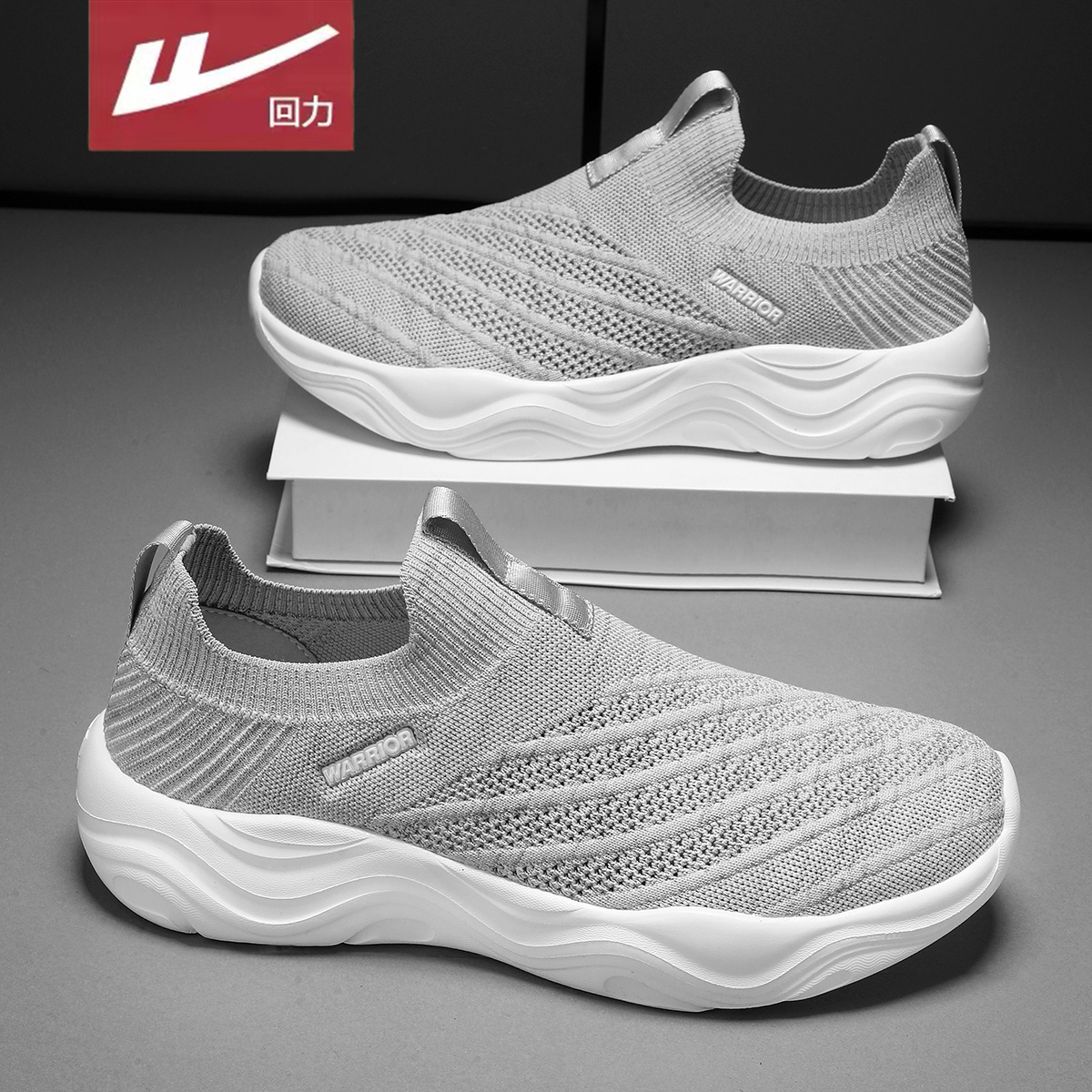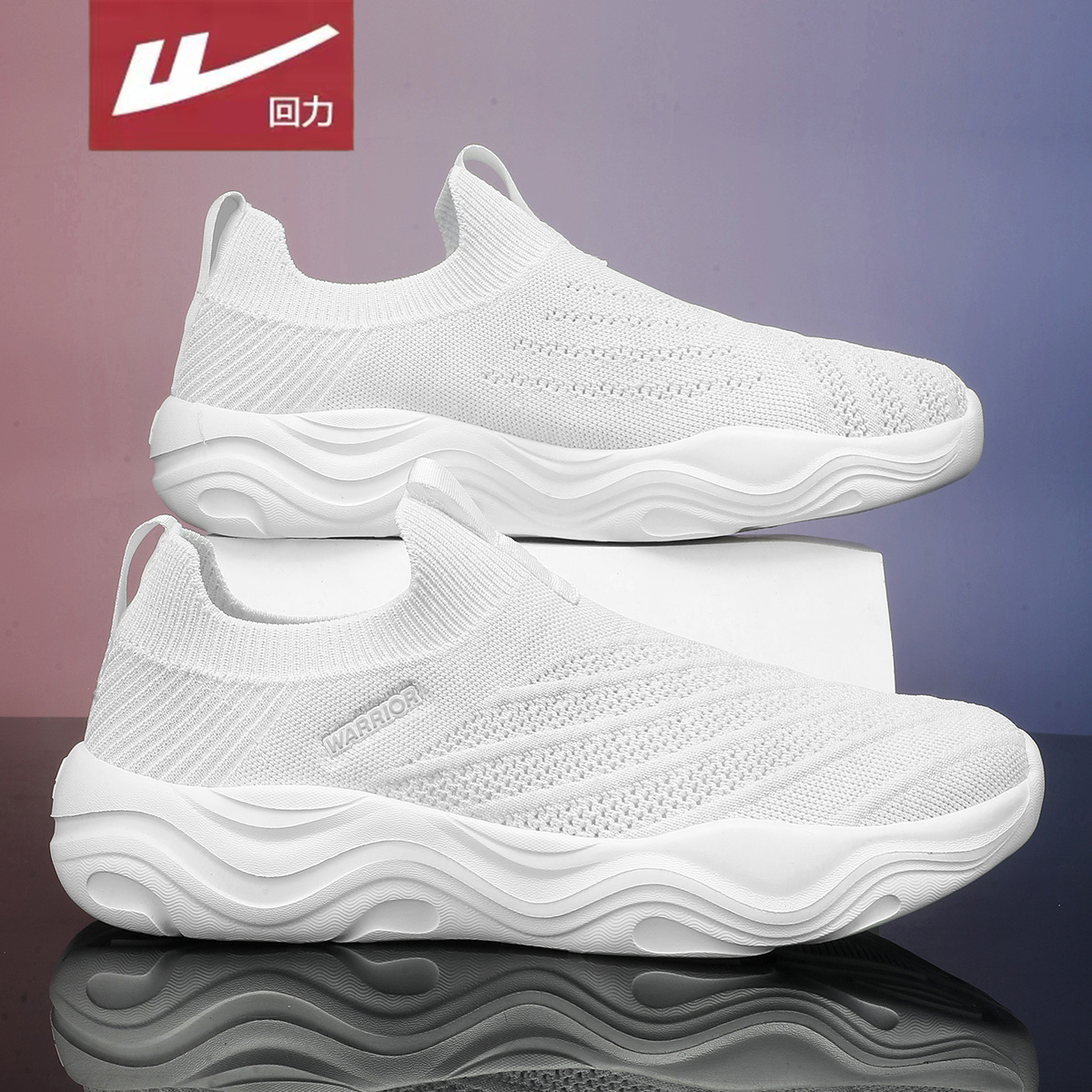 回力鞋子男鞋春秋透气男士休闲鞋白色运动飞织鞋一脚蹬中年健步鞋