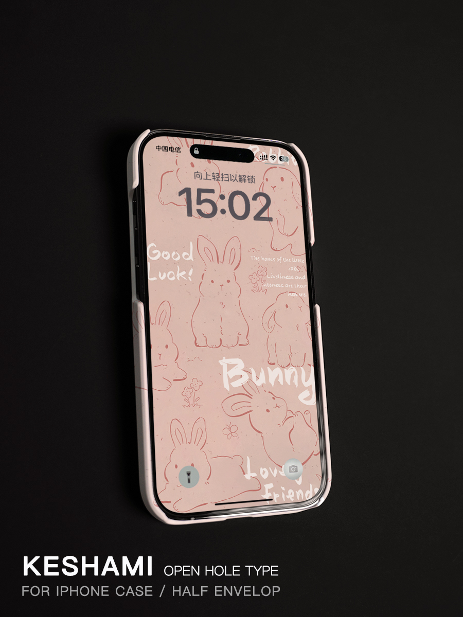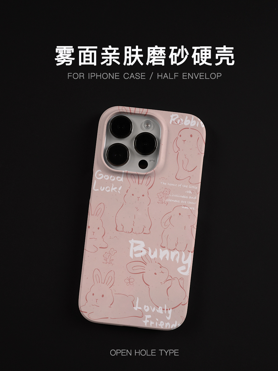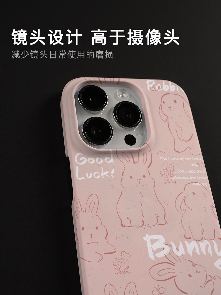 keshami适用苹果17promax/16pro手机壳带磁吸全包防摔新款磨砂硬壳潮男女15pro/14pro/13粉底线条兔子