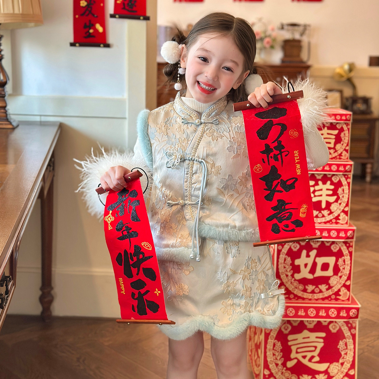 栀了成长记女童装国风甜美加厚套装2025冬季儿童新中式保暖两件套