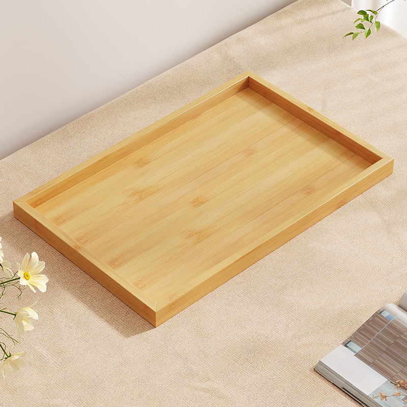 竹木托盘茶盘日式家用水杯盘长方形木制糖果盘酒店餐厅茶具烧烤盘