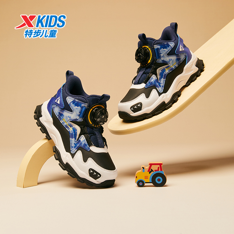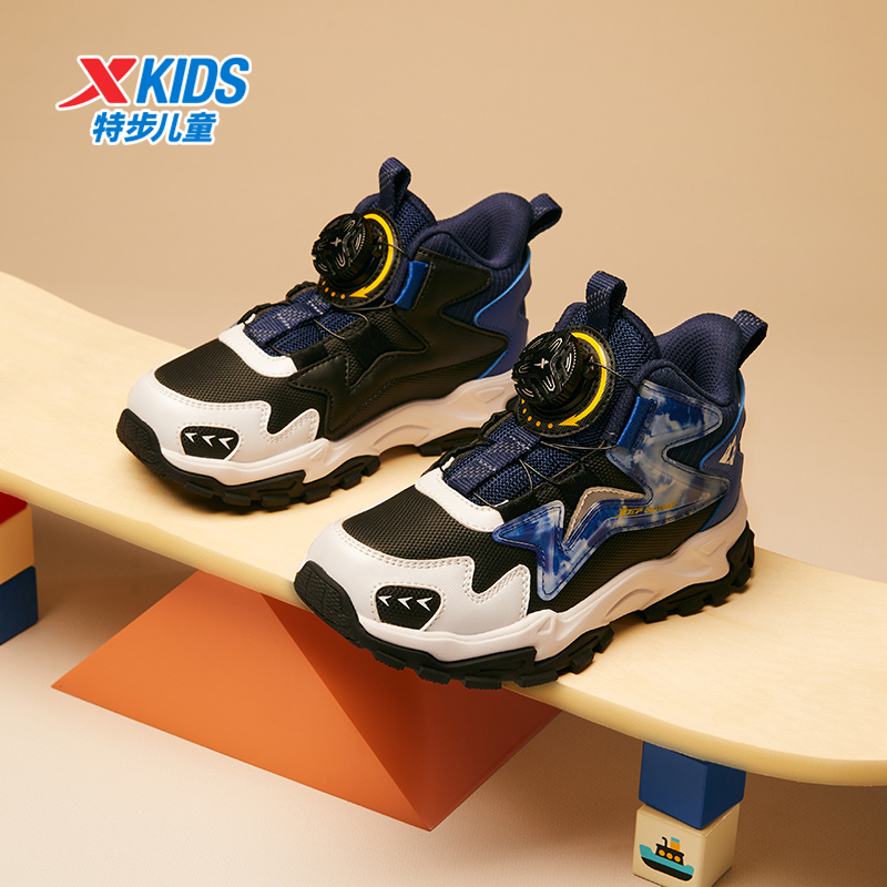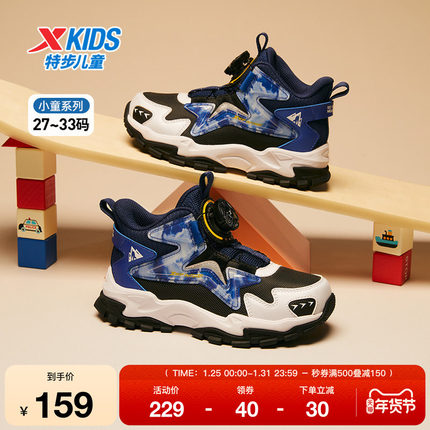 特步童鞋儿童冬季新款男童百搭休闲鞋幼小童舒适软底旋钮扣运动鞋