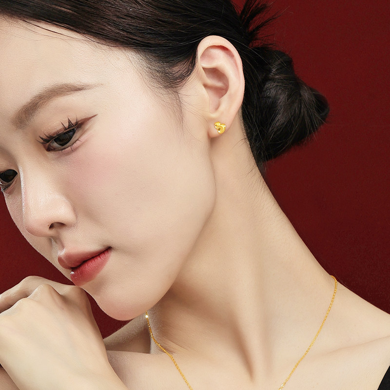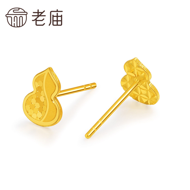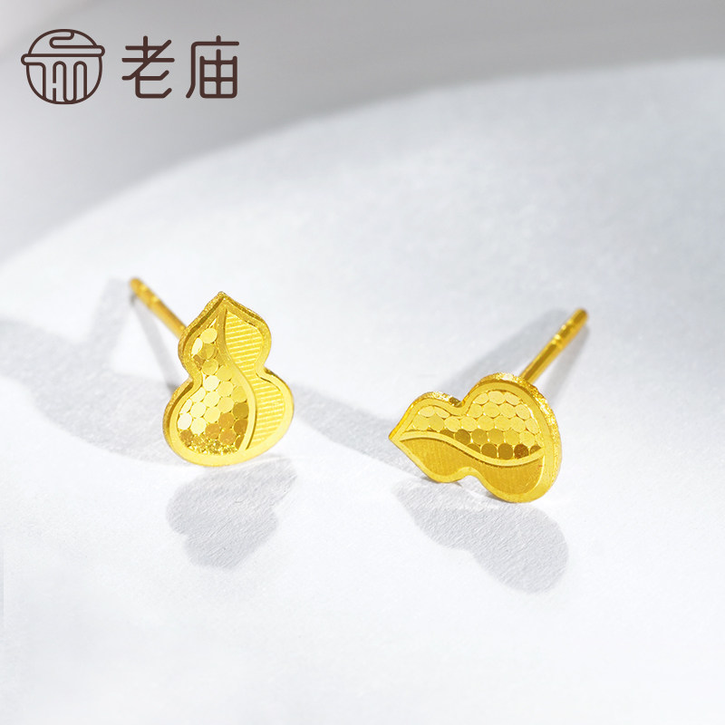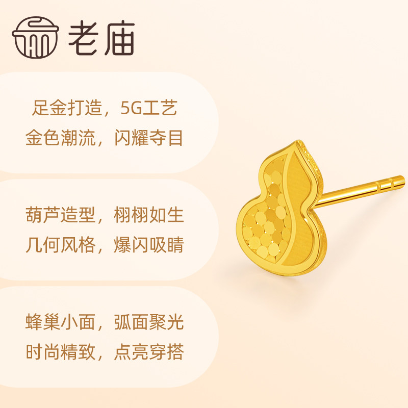 老庙黄金足金鳞甲金葫芦耳钉5G工艺金光闪闪大吉福禄寓意祥瑞送礼