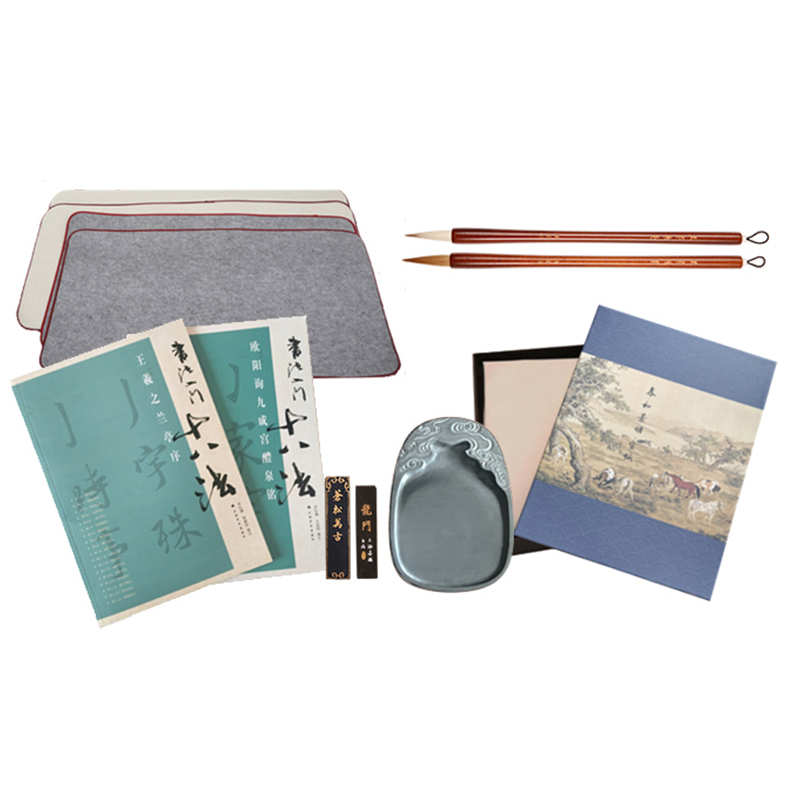 高情远致 文房四宝礼盒上海周虎臣笔墨纸砚收藏送礼新品 赠王羲之兰亭序和欧阳询九成宫醴泉铭各一本