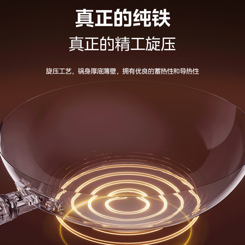 新品】美的铁锅家用炒菜锅老式轻量平底炒锅无涂层电磁炉通用锅具