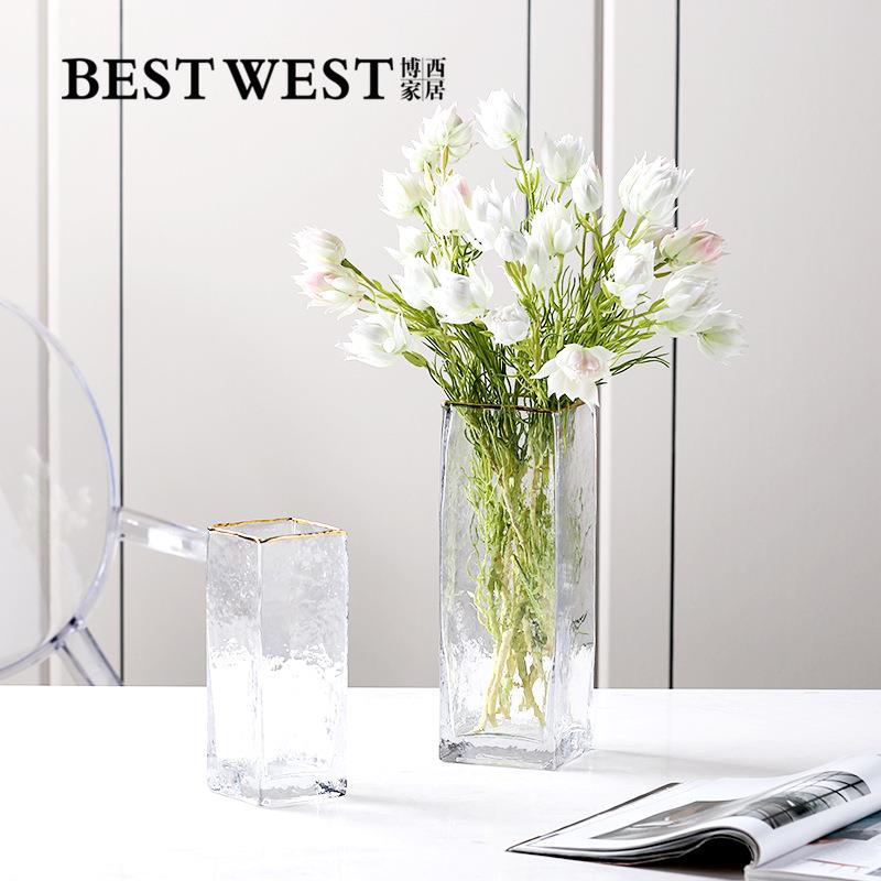 博西家居 简约北欧自然口边描金透明玻璃花瓶创意家居口水培花器
