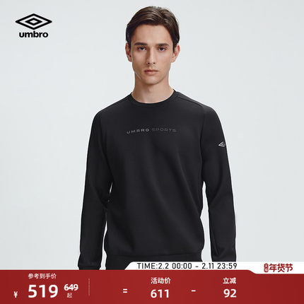 umbro茵宝官方运动新品男款保暖反光印花百搭款圆领长袖T套头卫衣