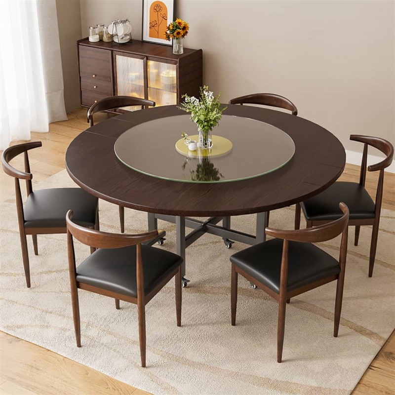 圆桌新中式餐e桌简约小户型家用折叠餐桌10人饭桌餐厅圆形吃饭桌