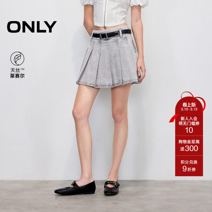 ONLY2026春季新款莱赛尔做旧水洗A字显瘦中腰牛仔裙短百褶半身裙