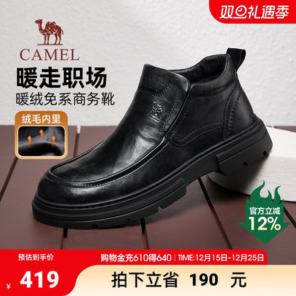 骆驼男鞋2025冬季新款舒适保暖棉鞋免系通勤商务休闲皮鞋男士皮靴