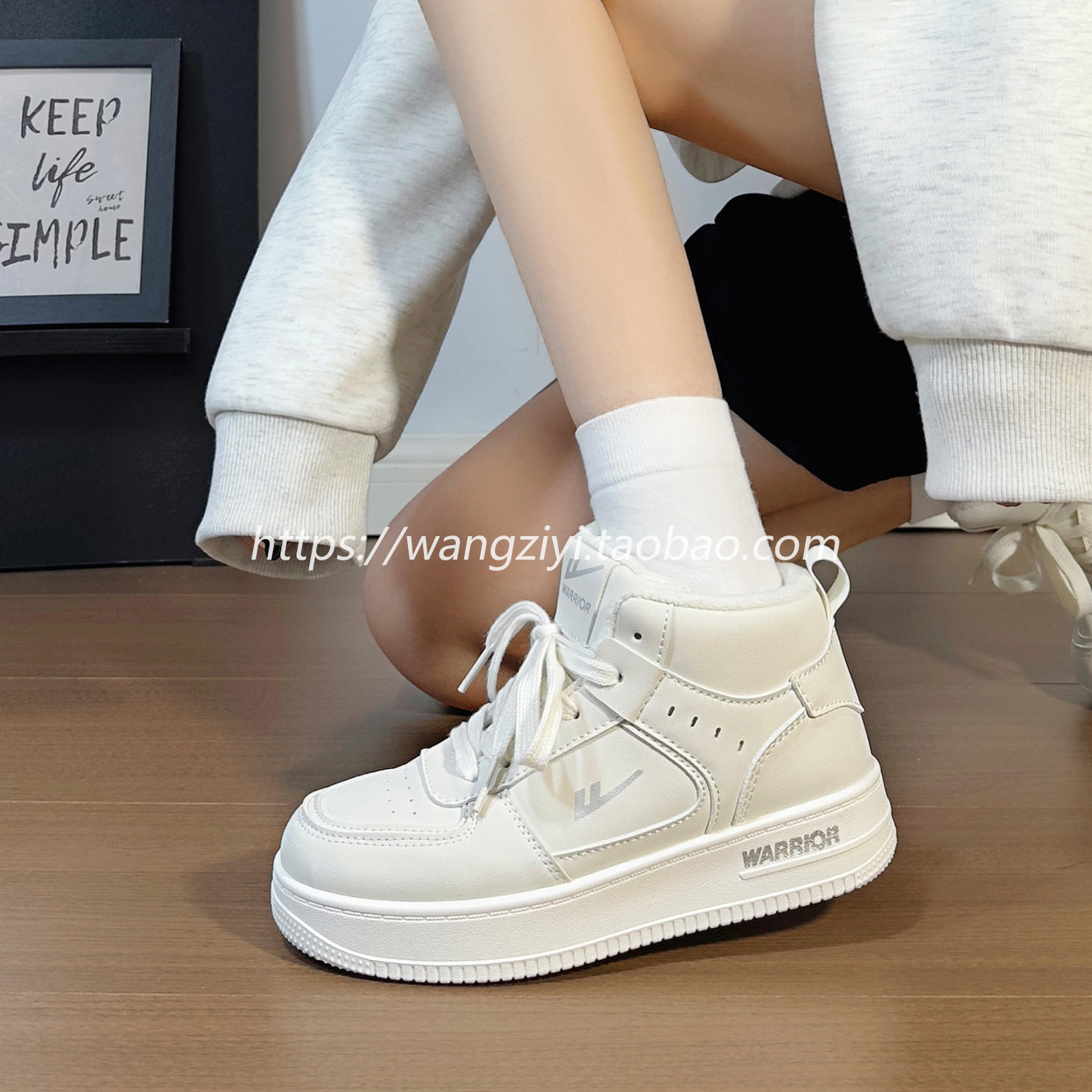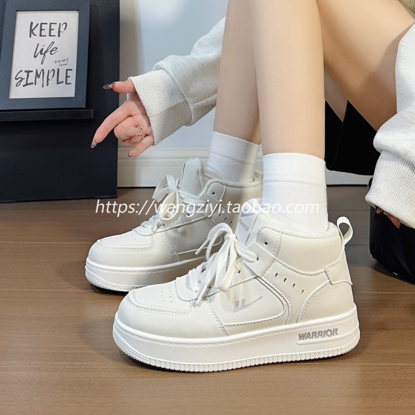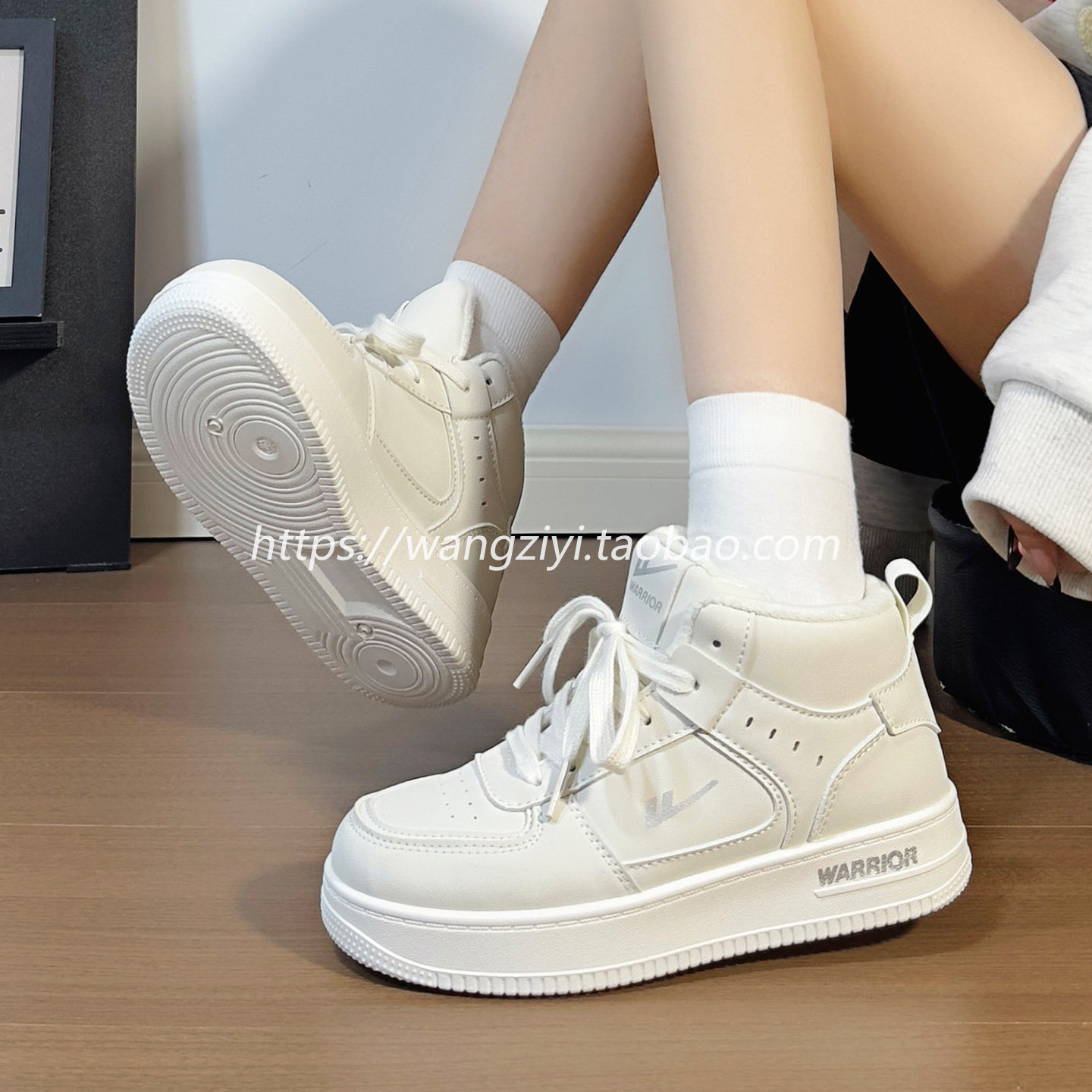 回力情侣款加绒高帮小白鞋冬季百搭休闲棉鞋厚底轻便保暖板鞋男女