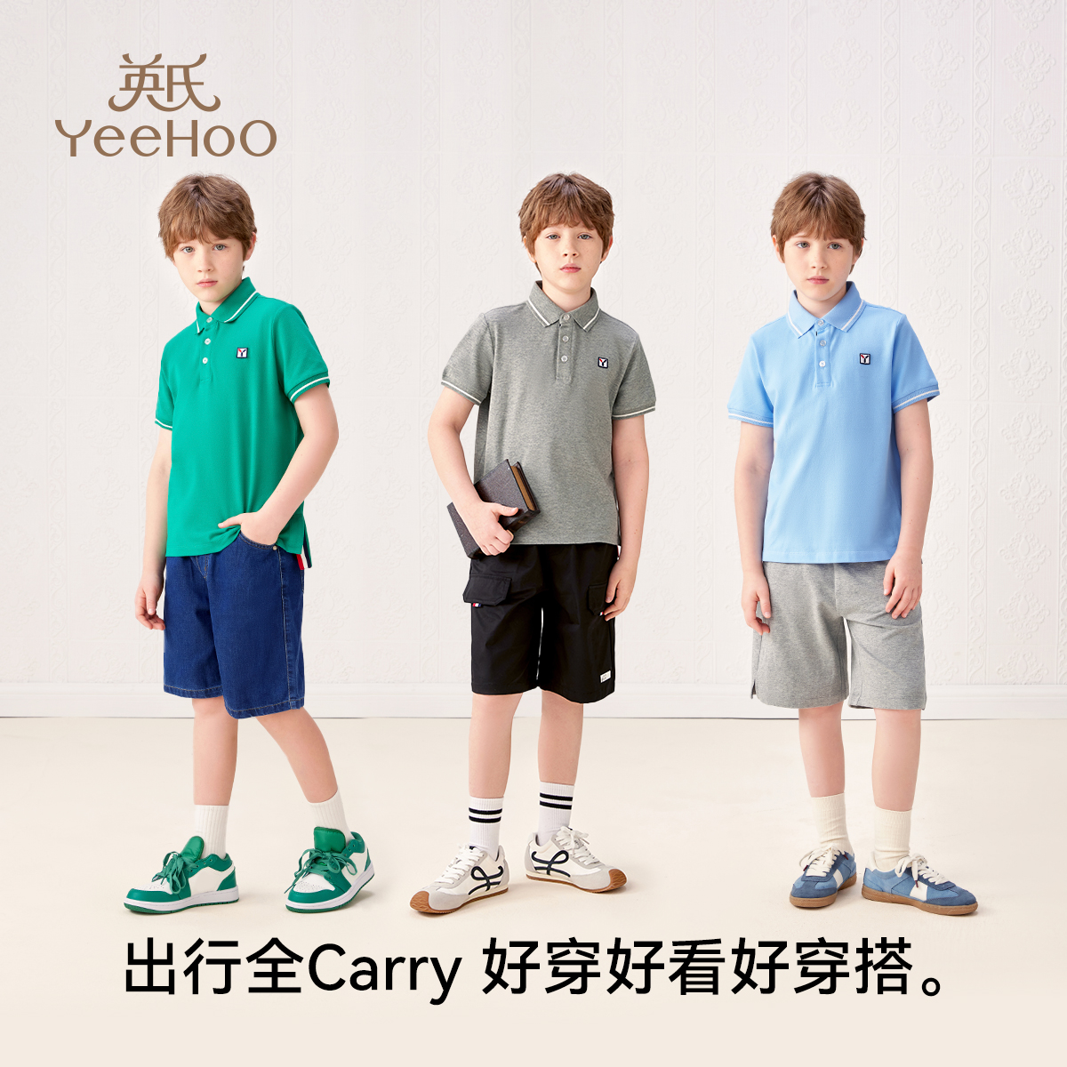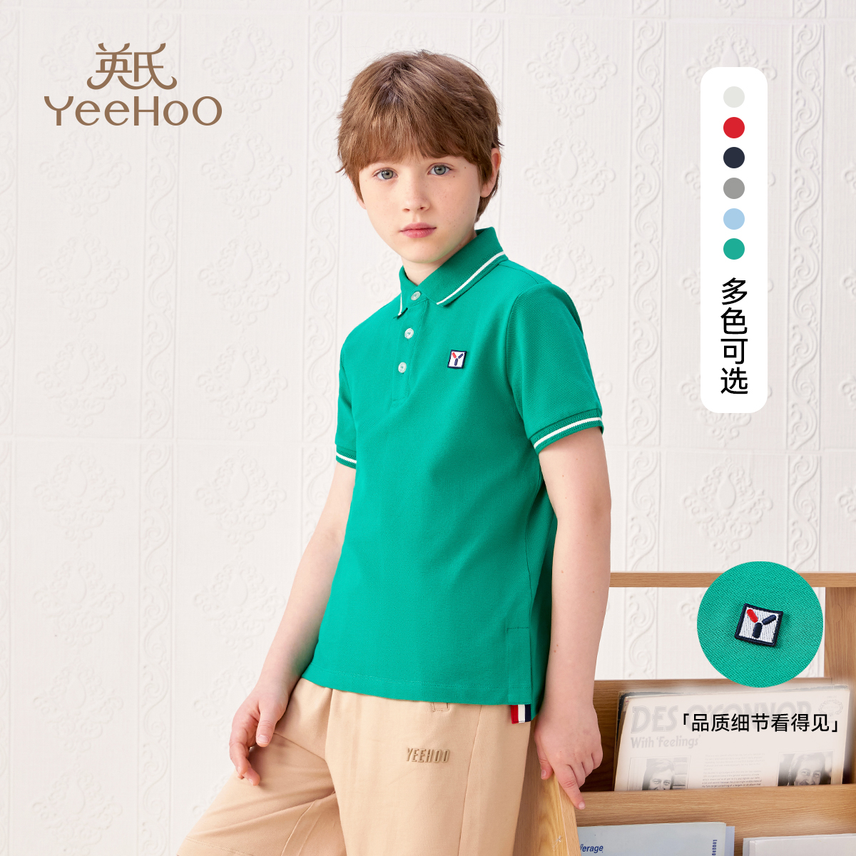 [凉感抑菌]英氏男童短袖2025夏季儿童POLO衫休闲运动T恤帅气上衣