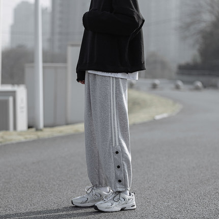 GOGOSOON休闲男装单排扣卫裤2025春秋新款长裤男生日系宽松束脚裤