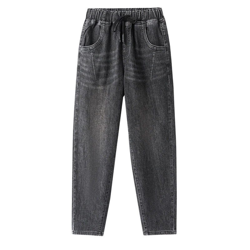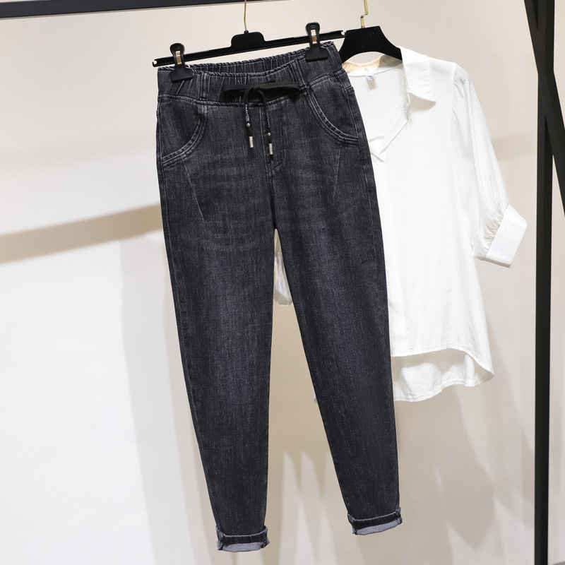 大码宽松牛仔裤女弹力松紧腰胖MM裤子胯宽大腿粗200斤长裤哈伦裤