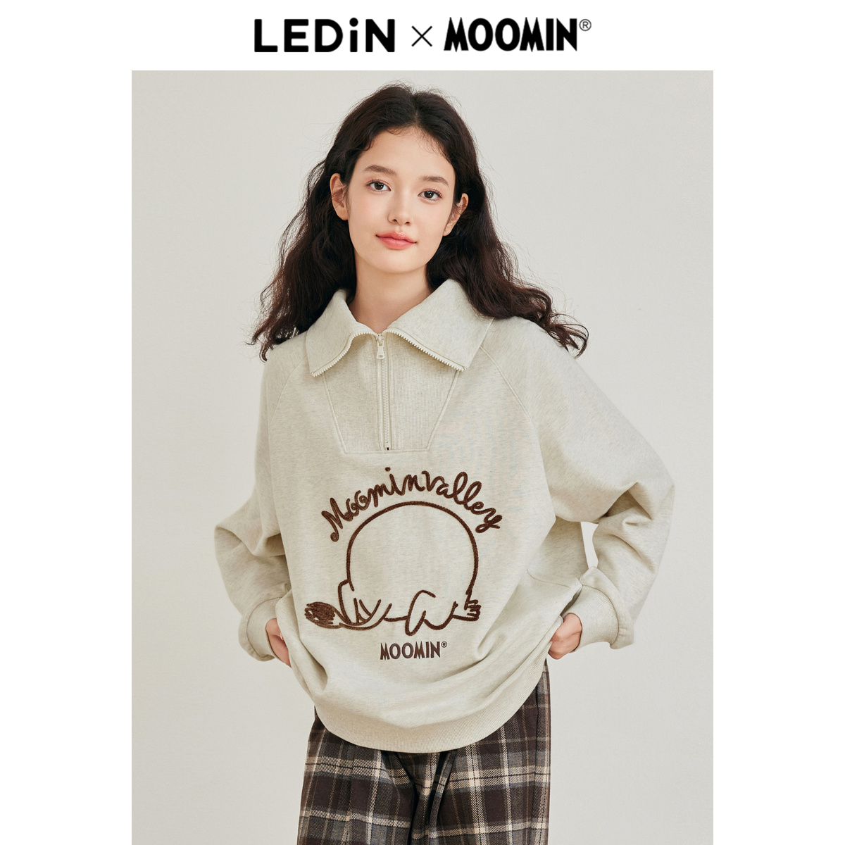 【姆明联名】乐町半开襟翻领卫衣女冬季新款卡通绣花宽松上衣