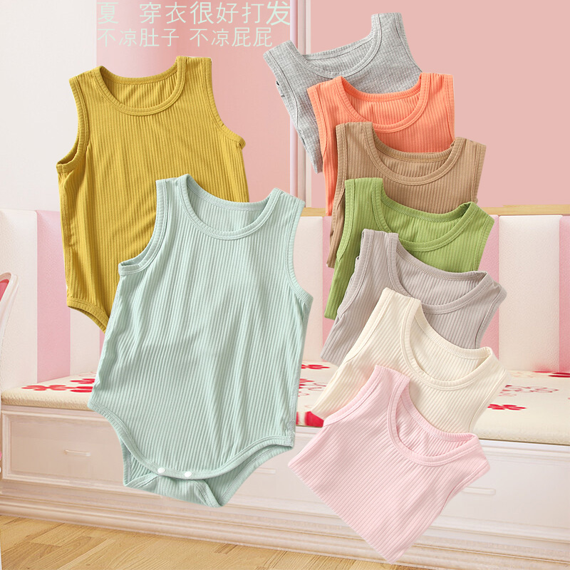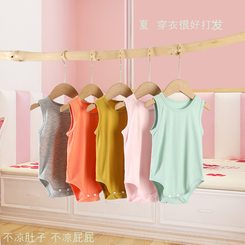 婴儿包屁衣夏季薄男女宝宝夏装冰丝莫代尔背心连体衣三角哈衣爬服