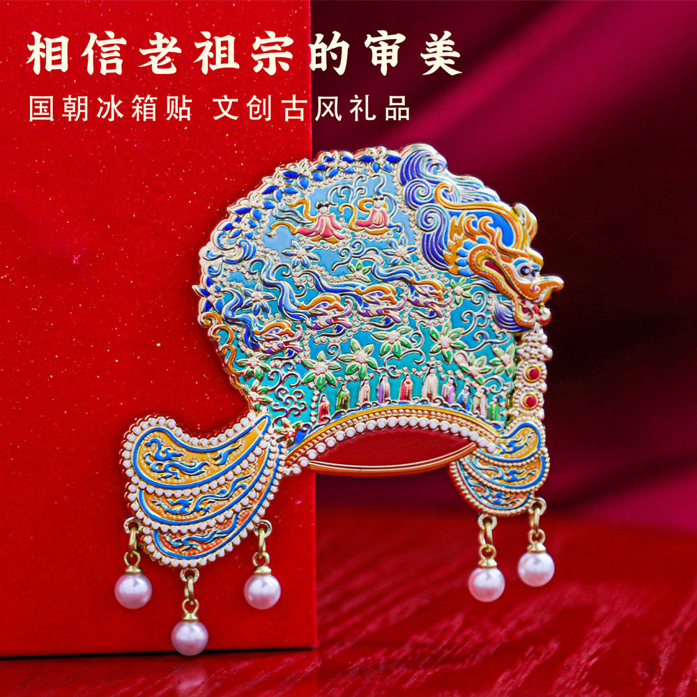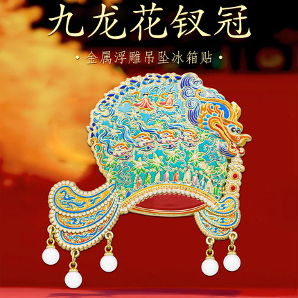 宋代九龙花钗冠金属磁贴冰箱贴中国风博物馆文创旅游纪念品伴手礼