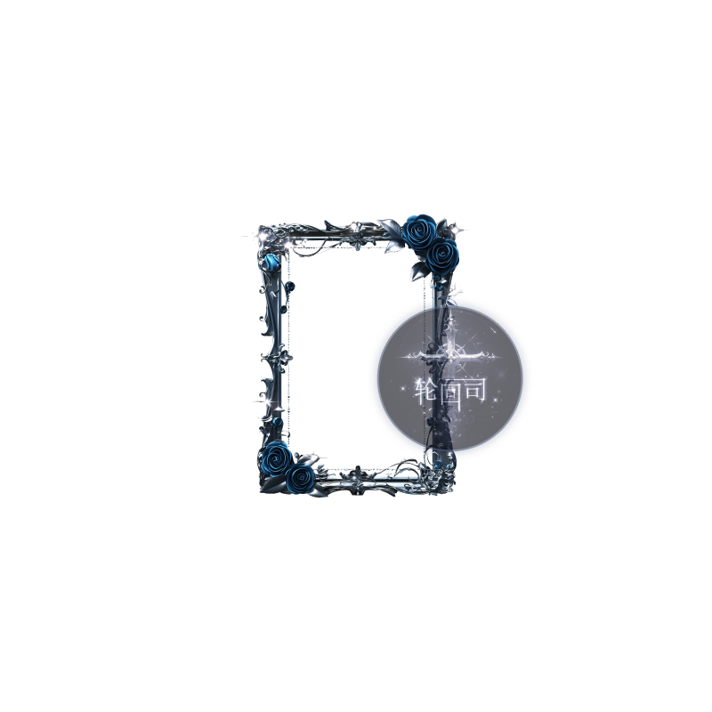 哥特欧式魔幻巴洛克边框银色金属蓝玫瑰相框PNG原创可商美工素材