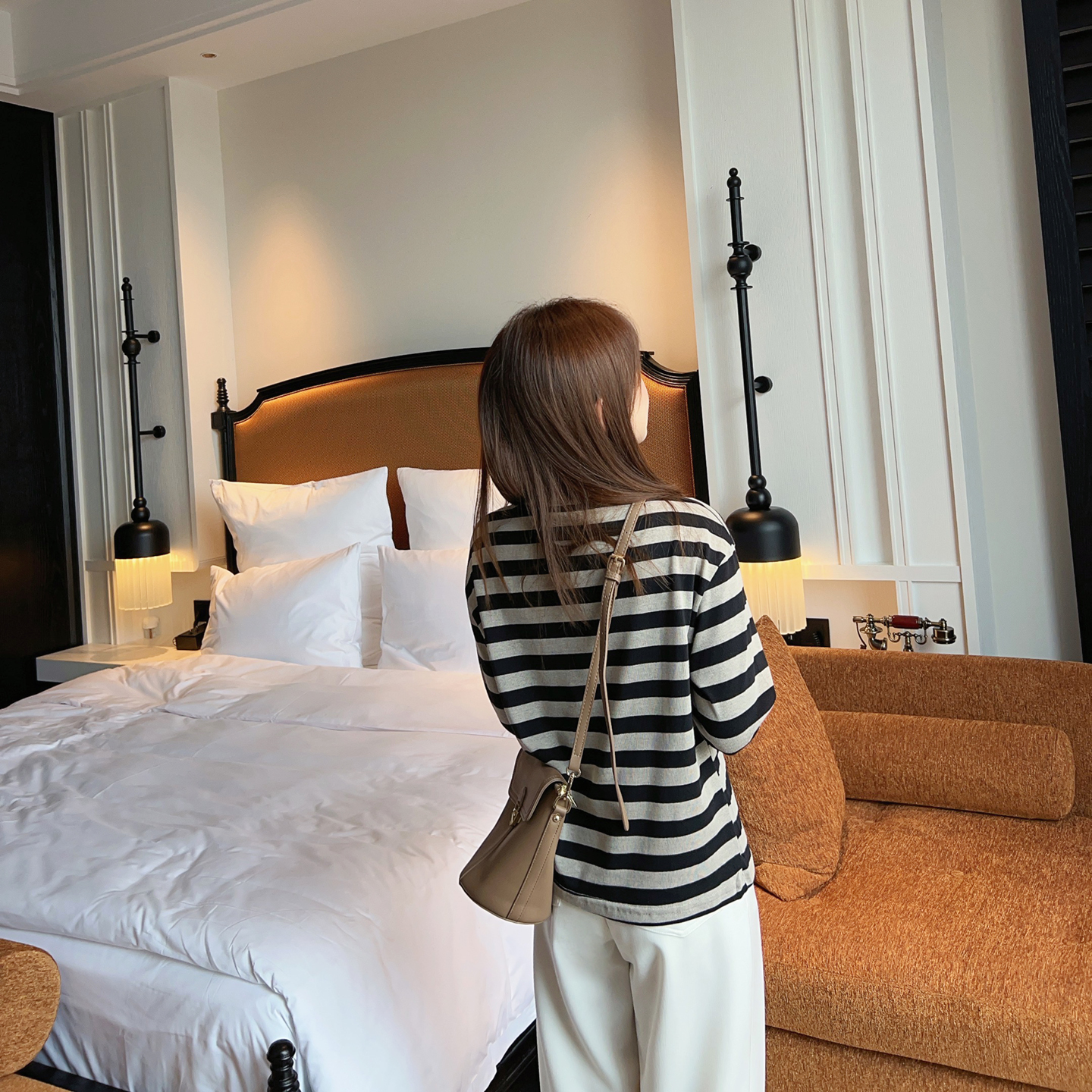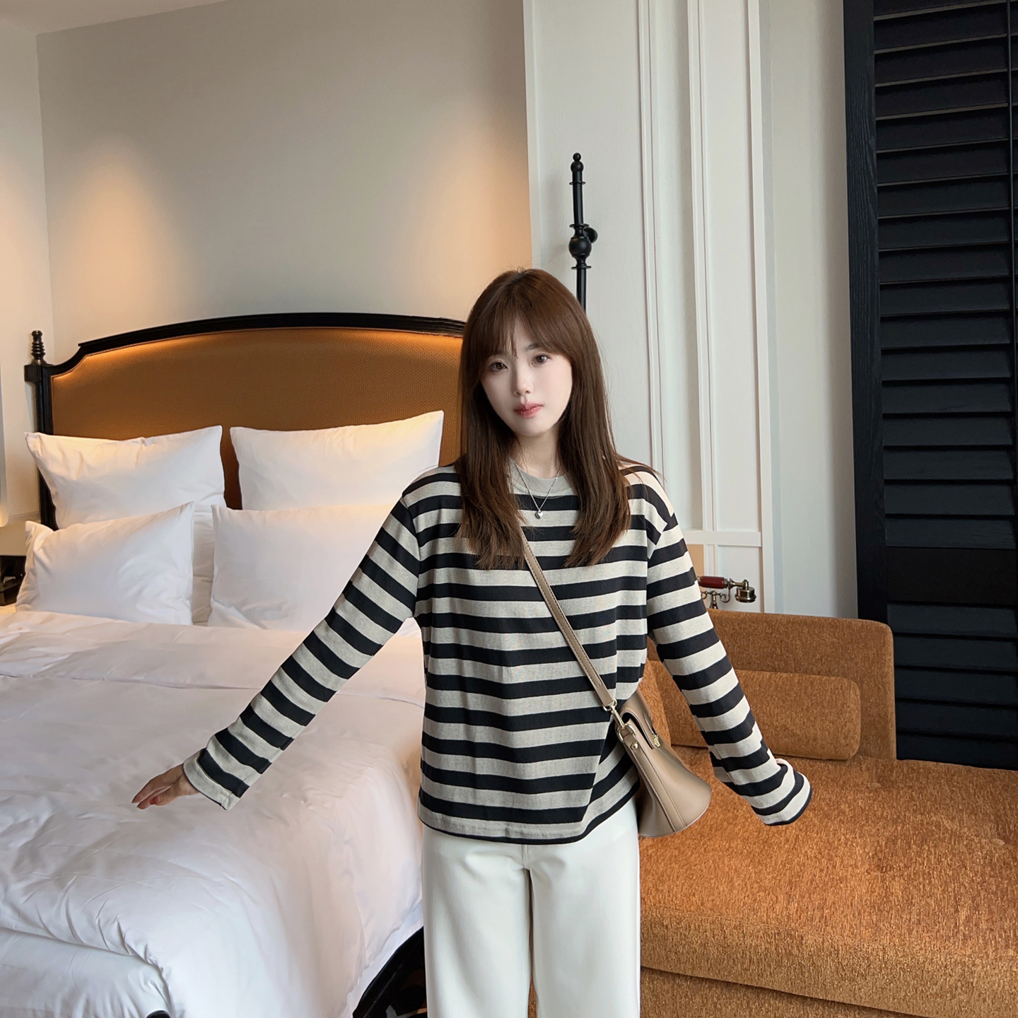 小小家 小个子小码长袖条纹T恤25秋新款软糯宽松上衣体恤150