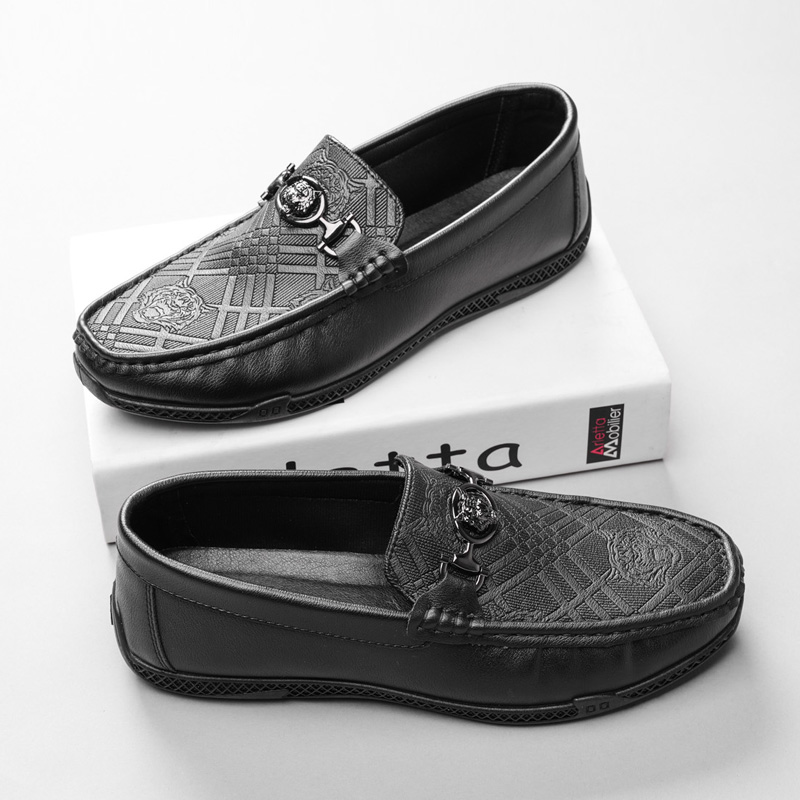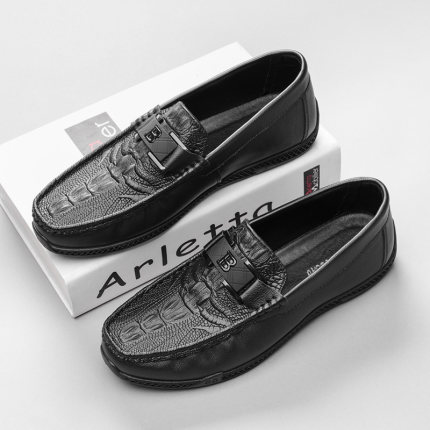 2025春季新款鳄鱼纹高档商务懒人皮鞋休闲豆豆鞋男日系韩版乐福鞋