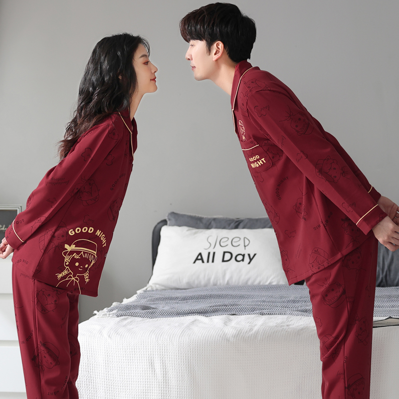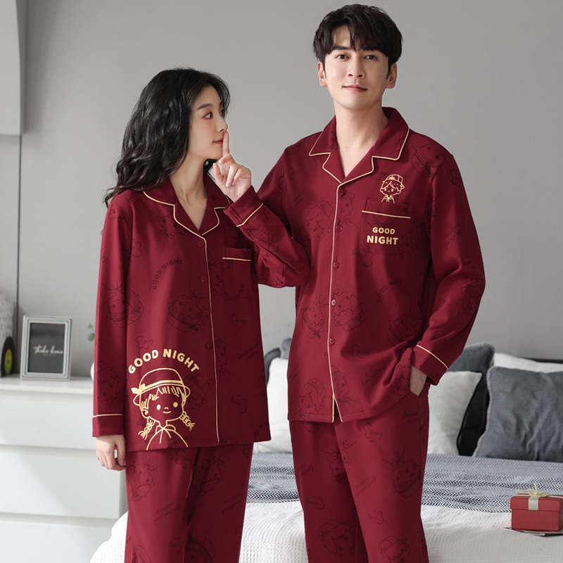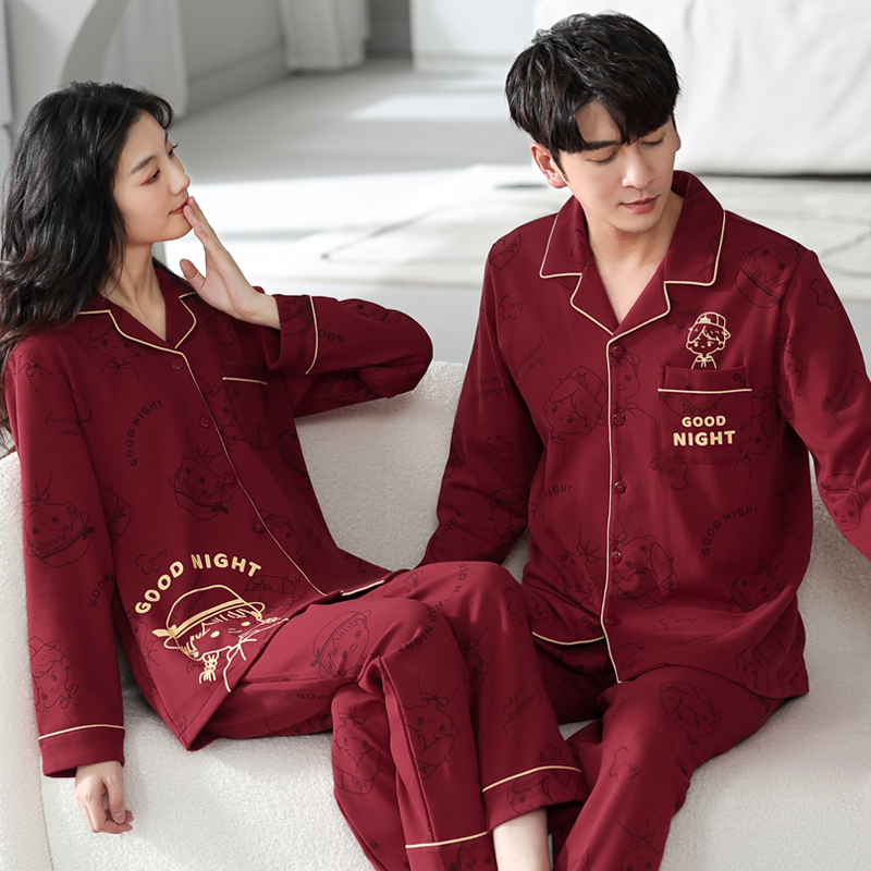 情侣睡衣纯棉长袖家居服新婚男结婚红色本命年一男一女春秋款套装
