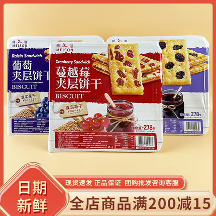MEISON明之选葡萄夹层饼干休闲早餐代餐蔓越莓菠萝夹心饼干小零食