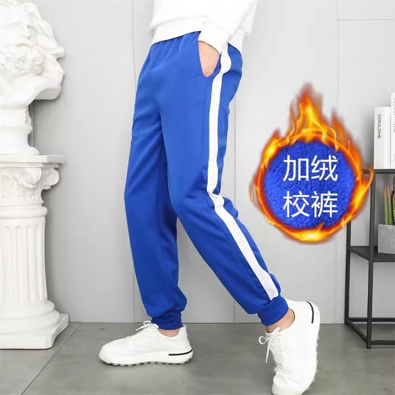 蓝色春夏校服裤子男女两道杠秋冬加厚保暖中小学生运动裤一条白边