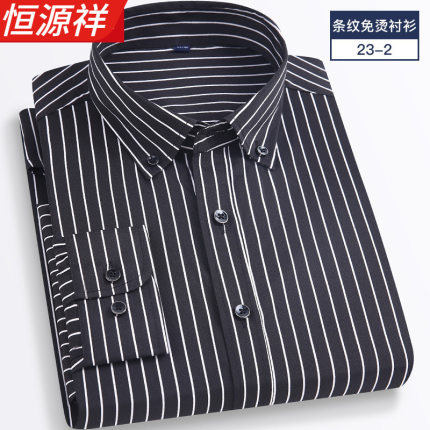 恒源祥四季通用修身男装弹力条纹衬衫长袖方领上班穿白色条纹衬衫