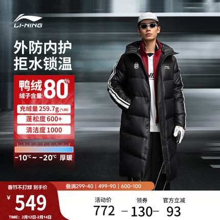 李宁火锅羽绒服丨热浪冬季情侣保暖面包衣服男加厚长款防寒外套女