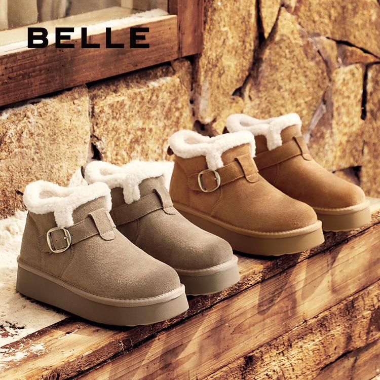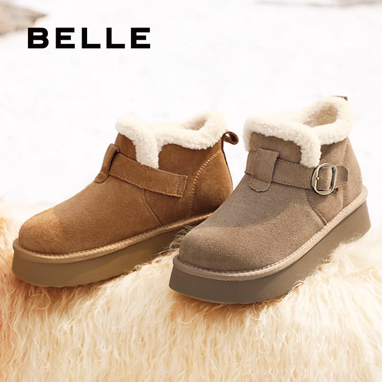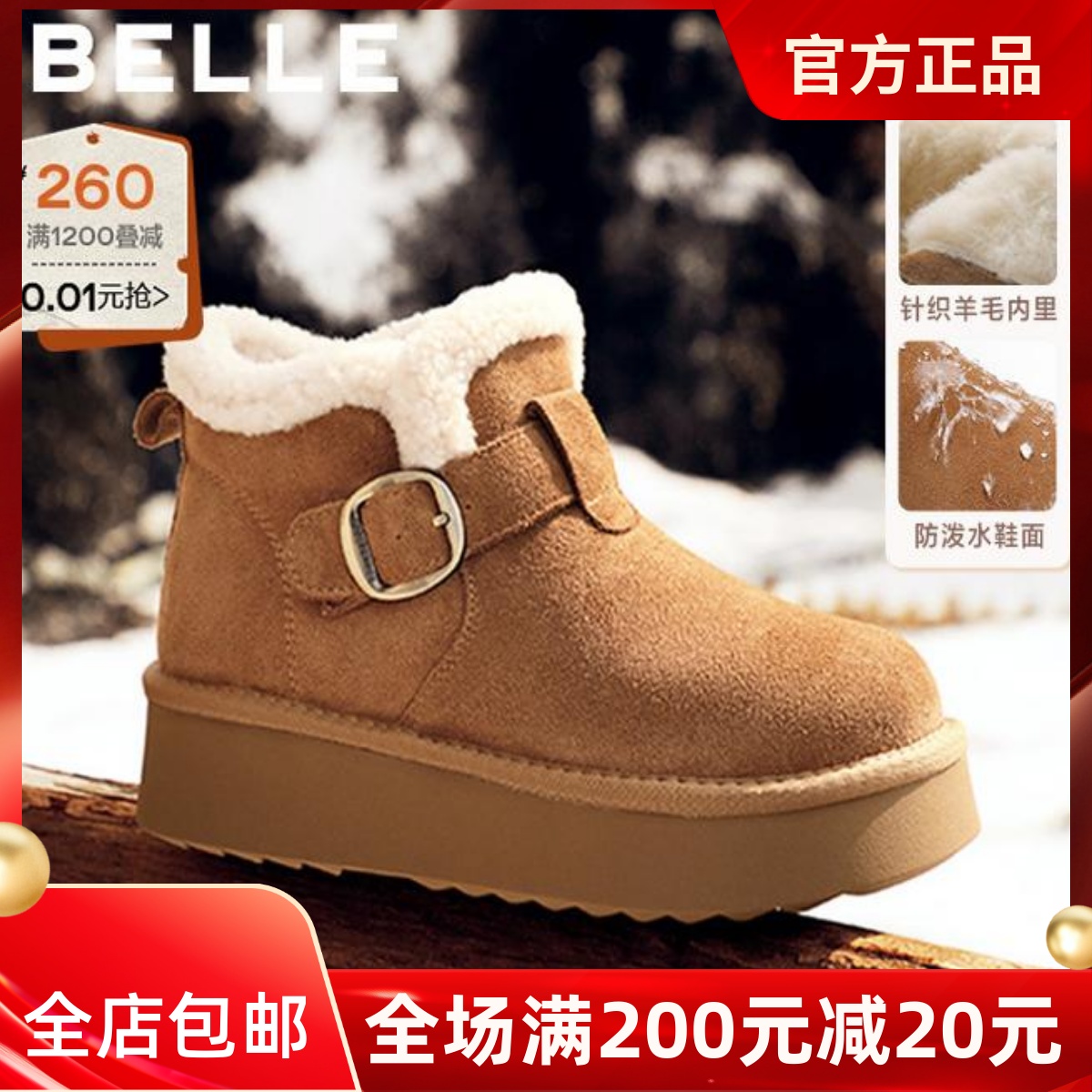 专柜正品百丽2024冬季雪顶加绒雪地靴女靴棉鞋毛毛鞋短靴B2322DD4