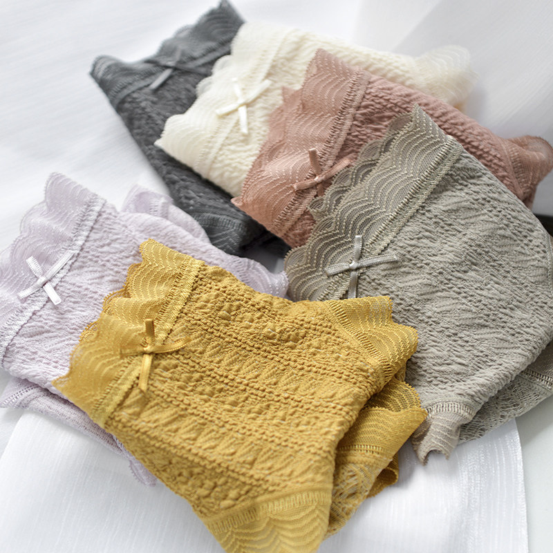 内裤女纯棉底裆中腰包臀女士三角短裤蕾丝舒适日系少女生大码无痕