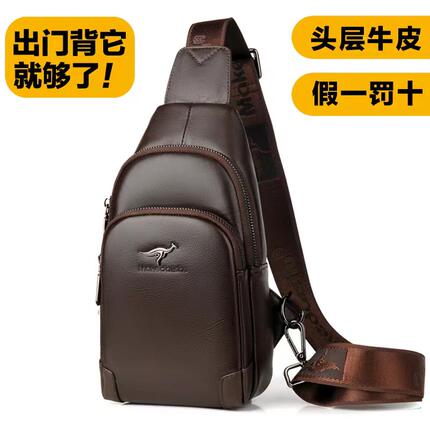 真皮胸包男休闲男士单肩斜挎包包头层牛皮男包韩版潮小背包斜肩包